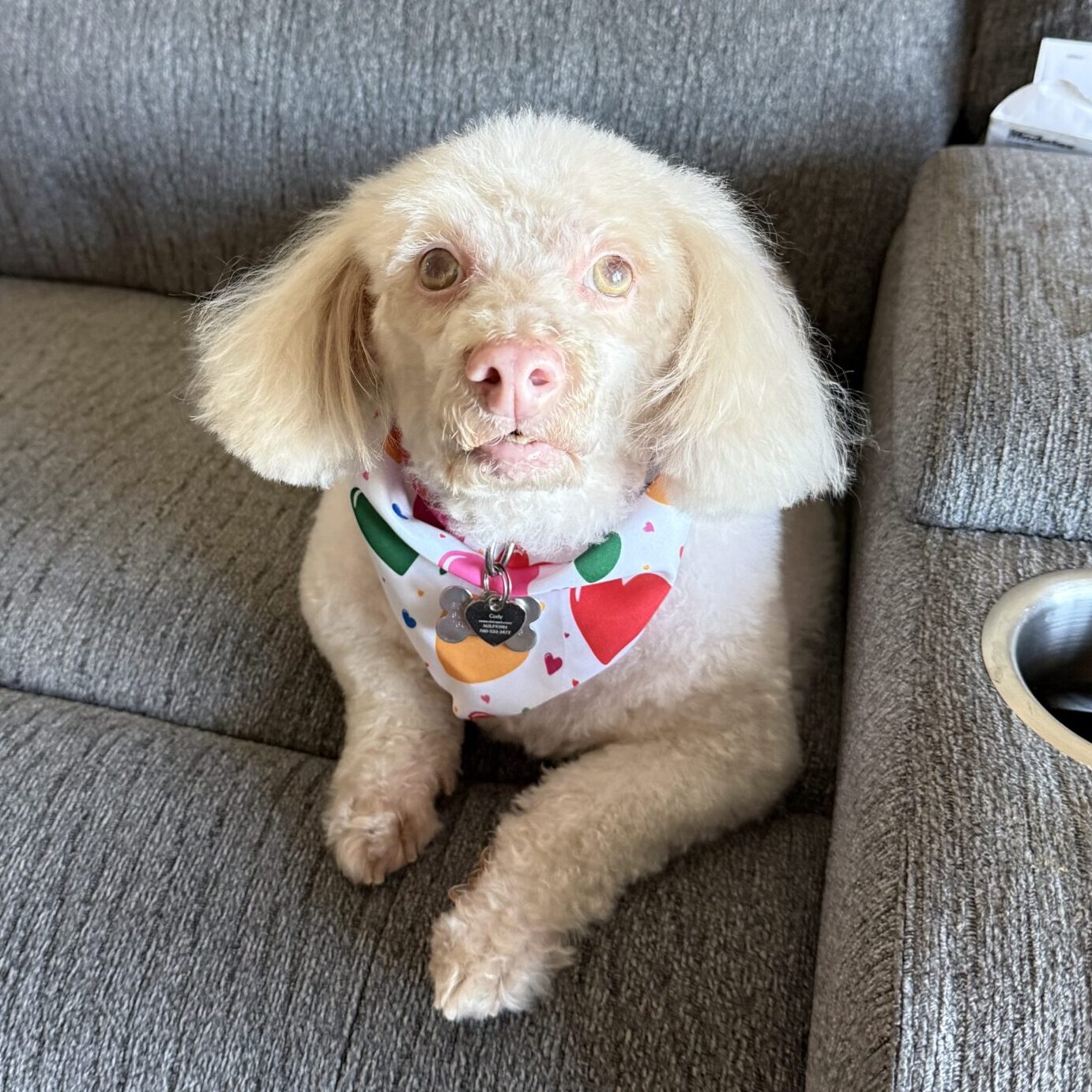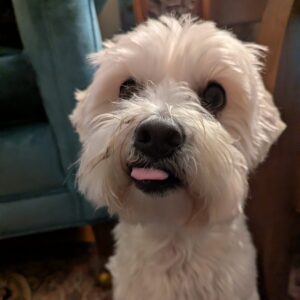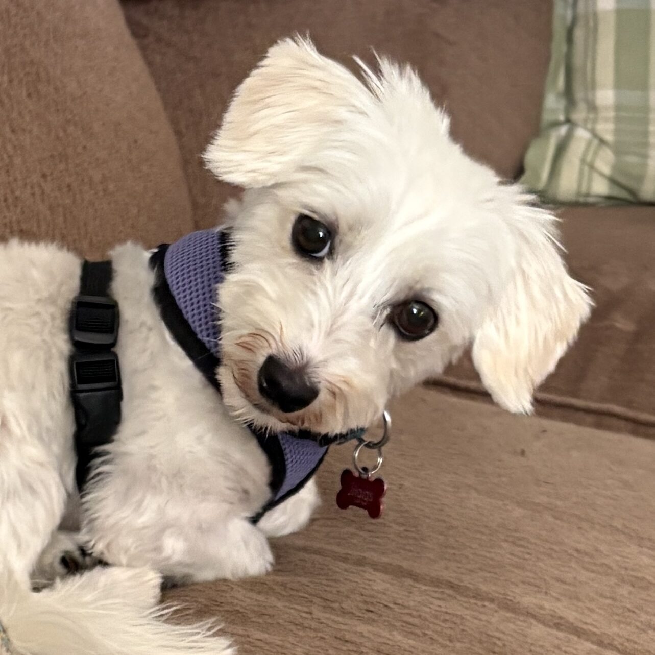 My name is Zippy and I’m an adorable, affectionate and oh-so-handsome Bichon boy of five and about 17 pounds of soft, pearly white hair who loves to cuddle, play and be right by your side. I’m a sweet, trusting little guy who is very responsive and eager to please. - Lucy