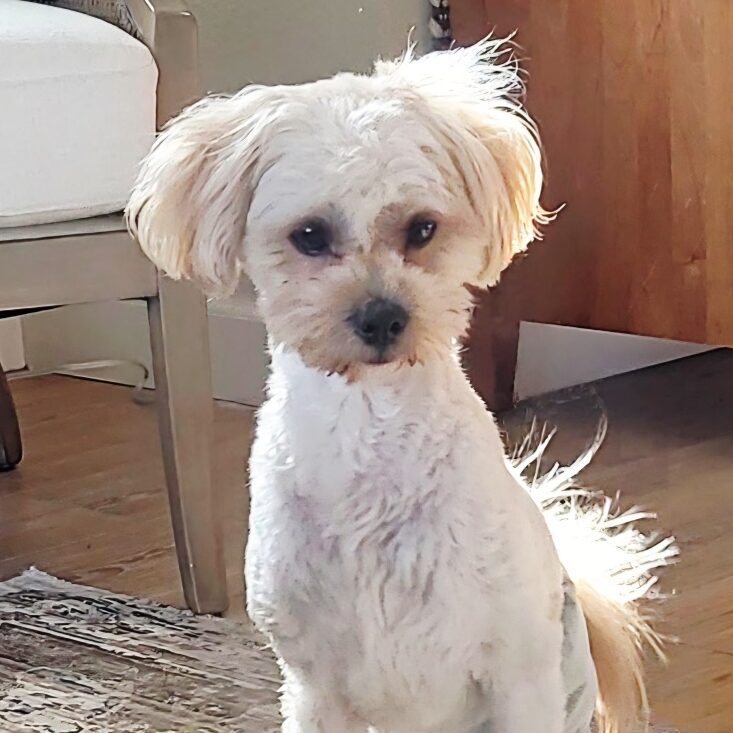 My name is Lovely, and Loveable Lucy, and I’m an adorable and tiny little girl with a VERY big heart. I’m about 7 years young, weigh just 6½–7 pounds, have soft white hair that is growing in beautifully and a sweet expression on my face. To say I am every inch the most portable of pals is an understatement!