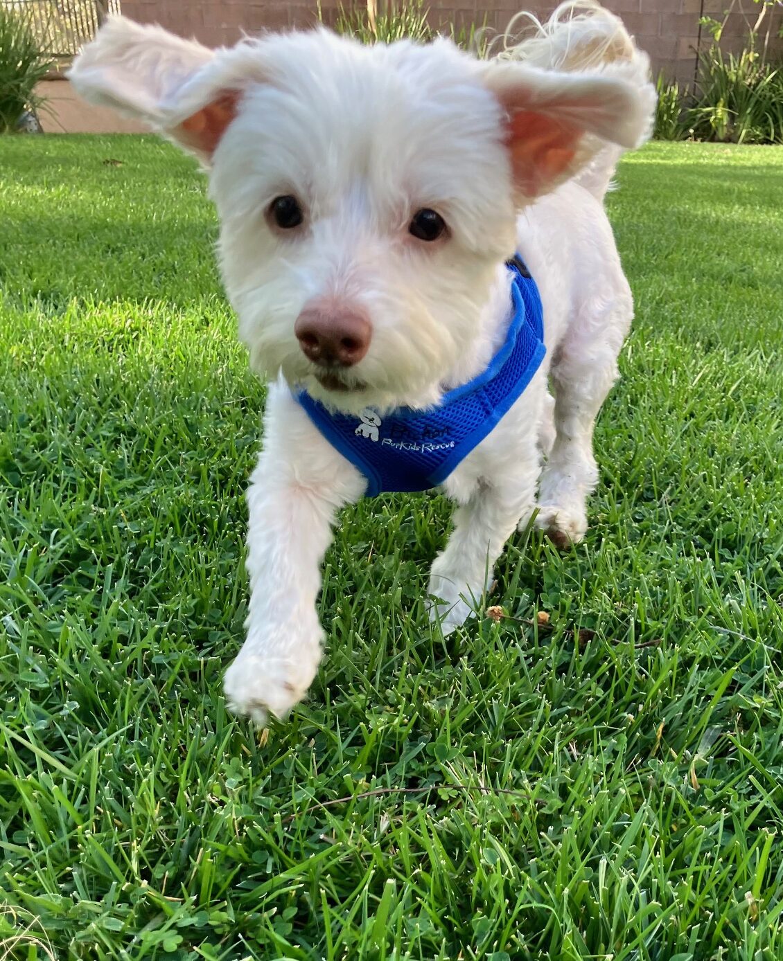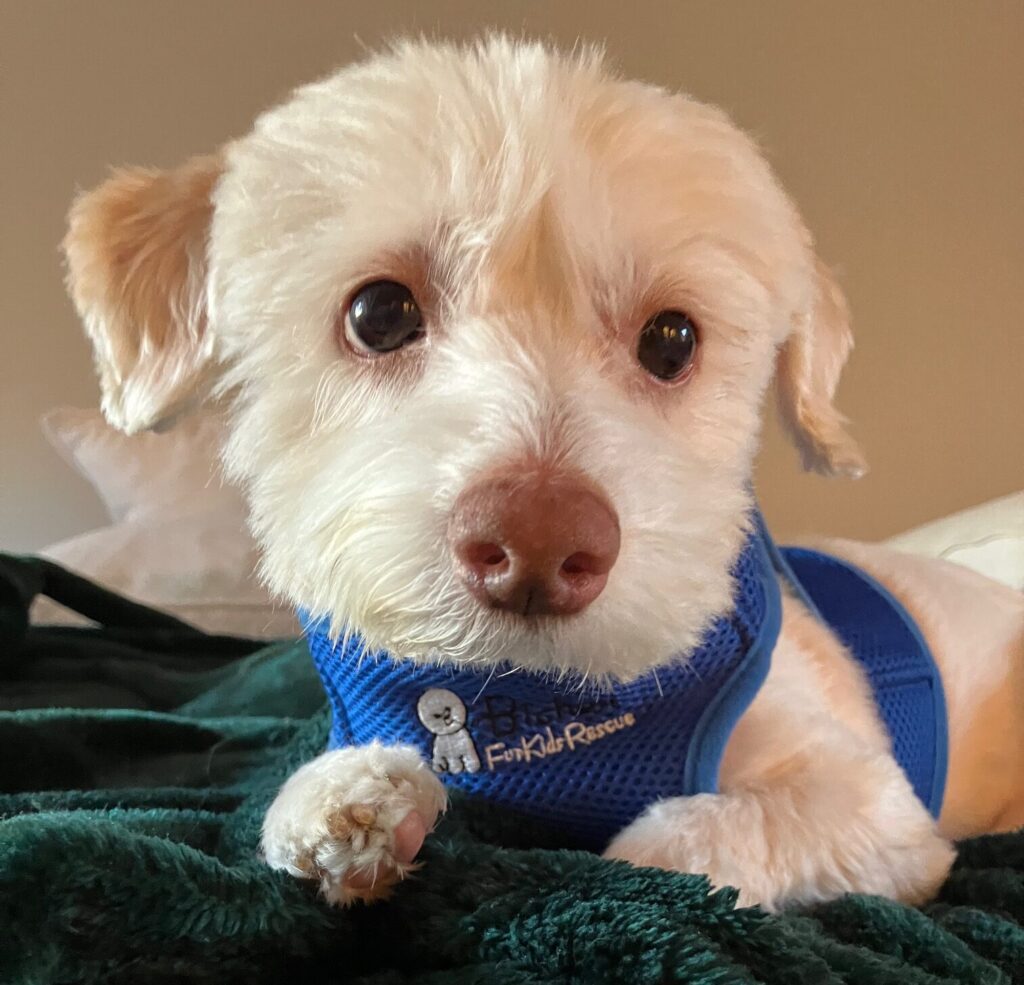I’m Bodacious Bailey, a spry and smiley little guy who is on the hunt for a forever family to call my own. I’m a handsome cream-colored pup with apricot ombre on my ears (I know, I’m quite the looker!). Weighing in at a solid 14 pounds, I’m the perfect size for cuddling, but I can also keep up with your active lifestyle. Speaking of which…walks…I might not be ready for marathon walks just yet, but I absolutely love a nice 10-minute stroll around the neighborhood. When I meet other pups on walks, I’m polite and curious, always wagging my tail to say “hi.” And people? I’m definitely a people-dog. When I greet you, I’ll jump up to say hello—but don’t worry, I’m so small, I’m more of a gentle hop than anything.