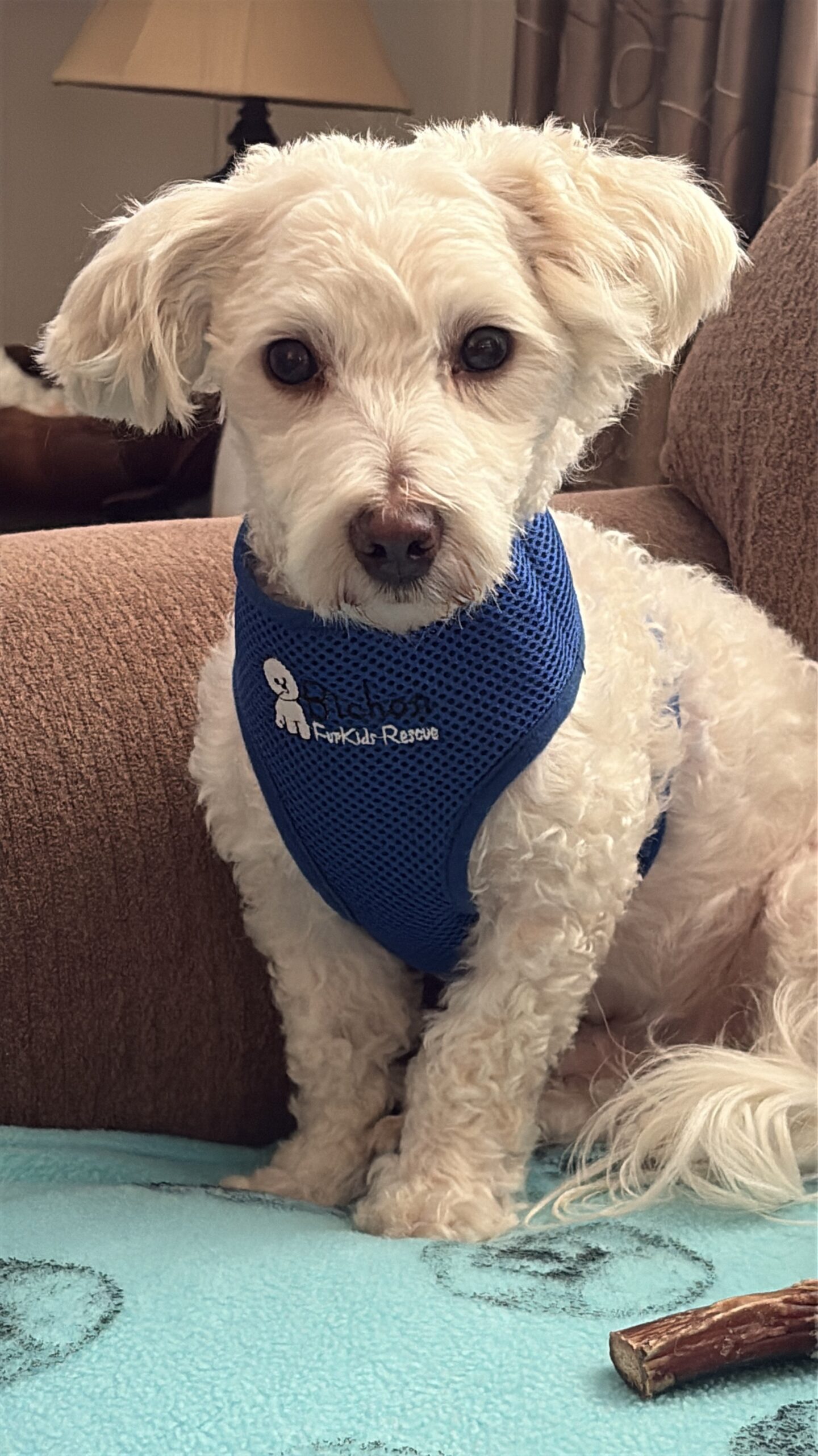 My name Faithful and Friendly Finneas, but my foster folks call me Finn. I’m a sweet, shy, playful and curious three-year-old Coton who is learning how it feels to be safe, secure, and loved. I have the softest white hair (of course!), soulful brown eyes, and weigh in at 12 pounds. I’m a bit of a ‘diamond in the rough’ who is becoming more braver every day, and working hard to live the life I was meant to live!