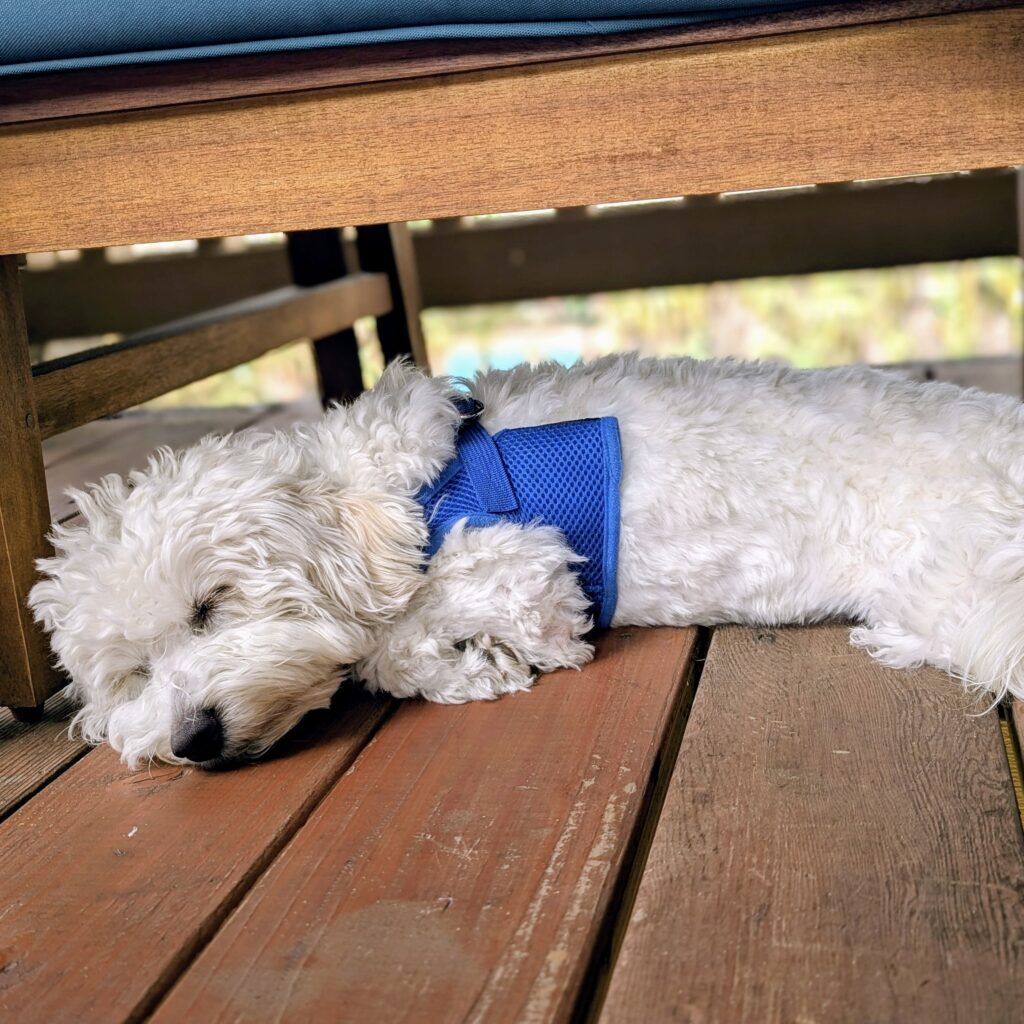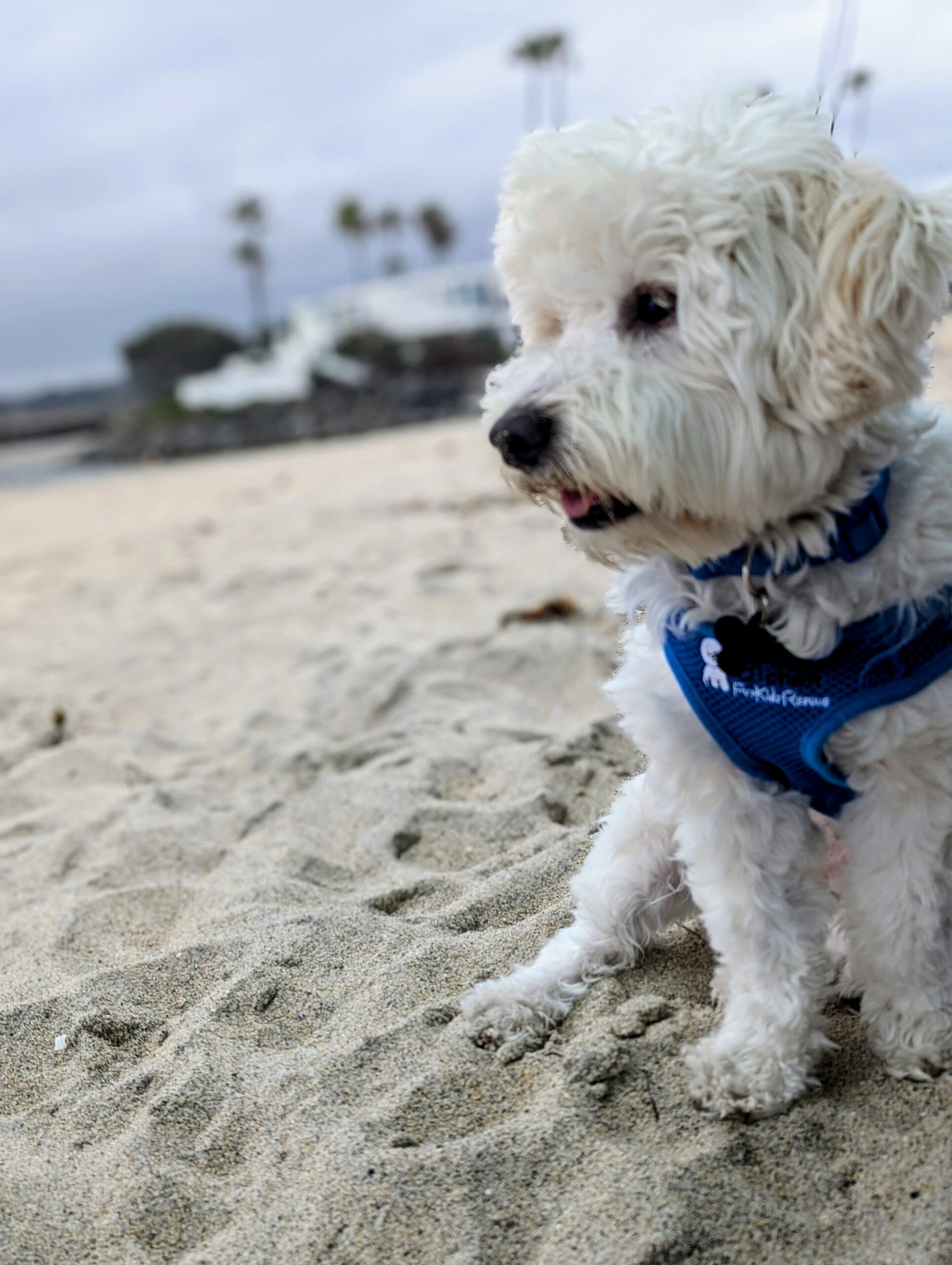 I get along great with other dogs—big and small—and I’ve already made some best pup-friends, including my foster brother, a Bichon mix. I even went to the dog beach twice and had a blast meeting new dogs! I was a little protective of our beach blanket (hey, someone’s gotta watch the stuff), but mostly I was all tail wags and happy hops.
