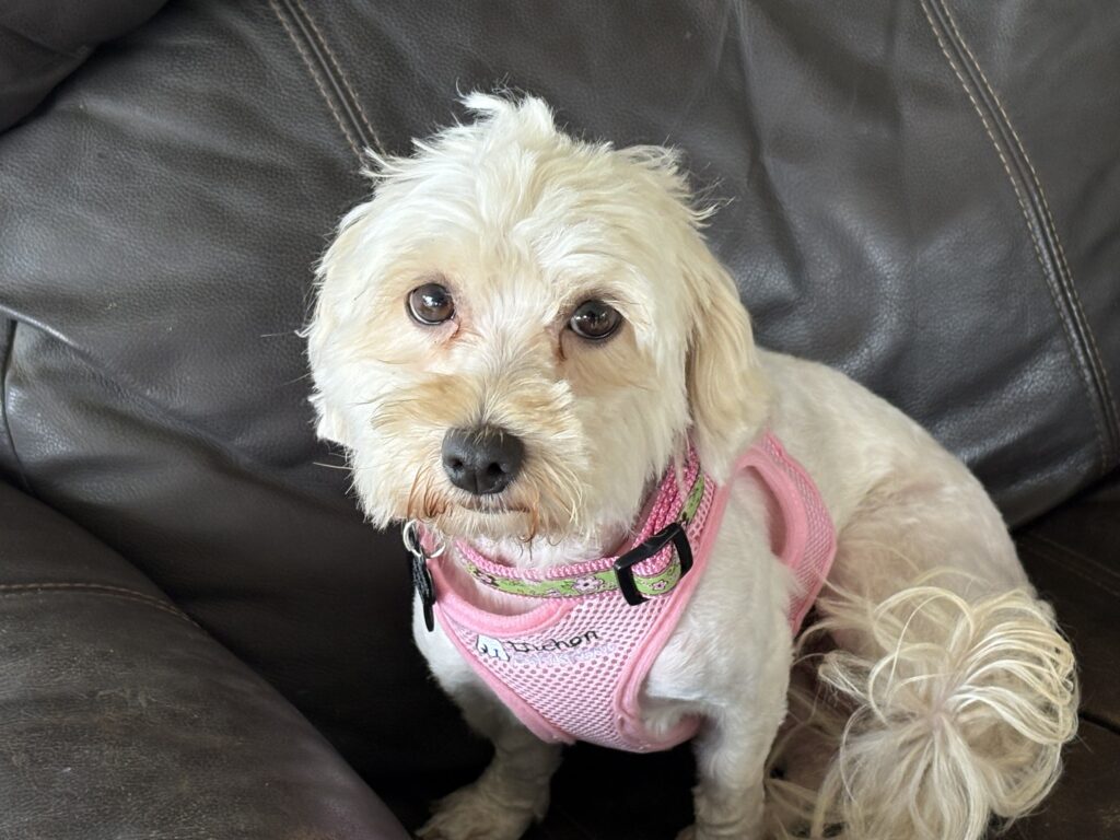 We both get along well with other dogs, love adults, and are friendly with children, though Linzi prefers gentle affection and would rather not be picked up by little hands. We ride beautifully in the car (no whimpering or car-sickness, just calm and content). We’ve done well on our potty training as we’ve adjusted to having a new routine.